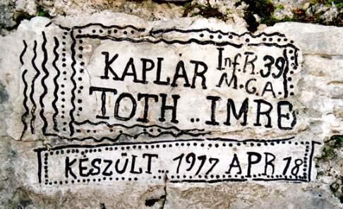 Ugyanabban a régióban található (Konstanjevica É) egy géppuska-állásban Tóth Imre tizedes felirata aki szintén géppuskásként szolgált. Mint a vésetből kitűnik, 1917. április 18-n örökítette meg adatait az utókornak.