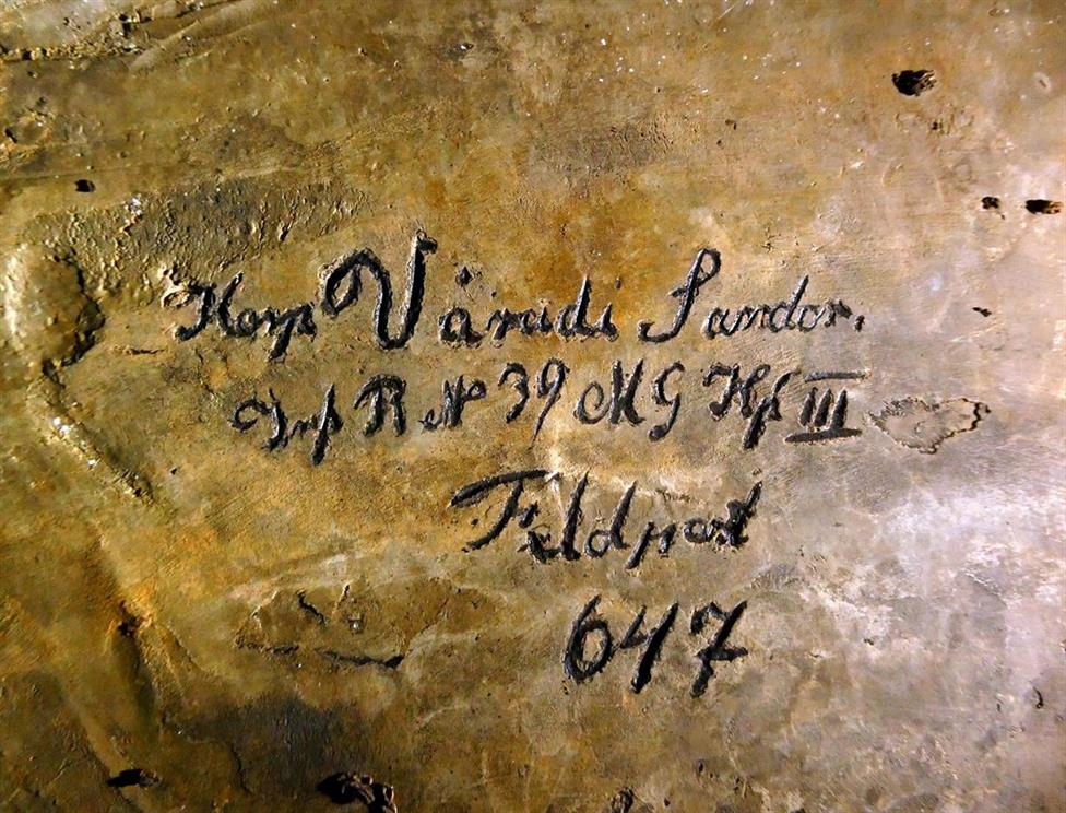 Váradi Sándor tizedes, az ezred III. géppuskás osztagának katonájaként örökítette meg nevét, beosztását, illetve tábori postaszámát. A kőbe vésett felirat a szlovéniai Gríže mellett található, egy részben beomlott kaverna egy még járható szakaszában.